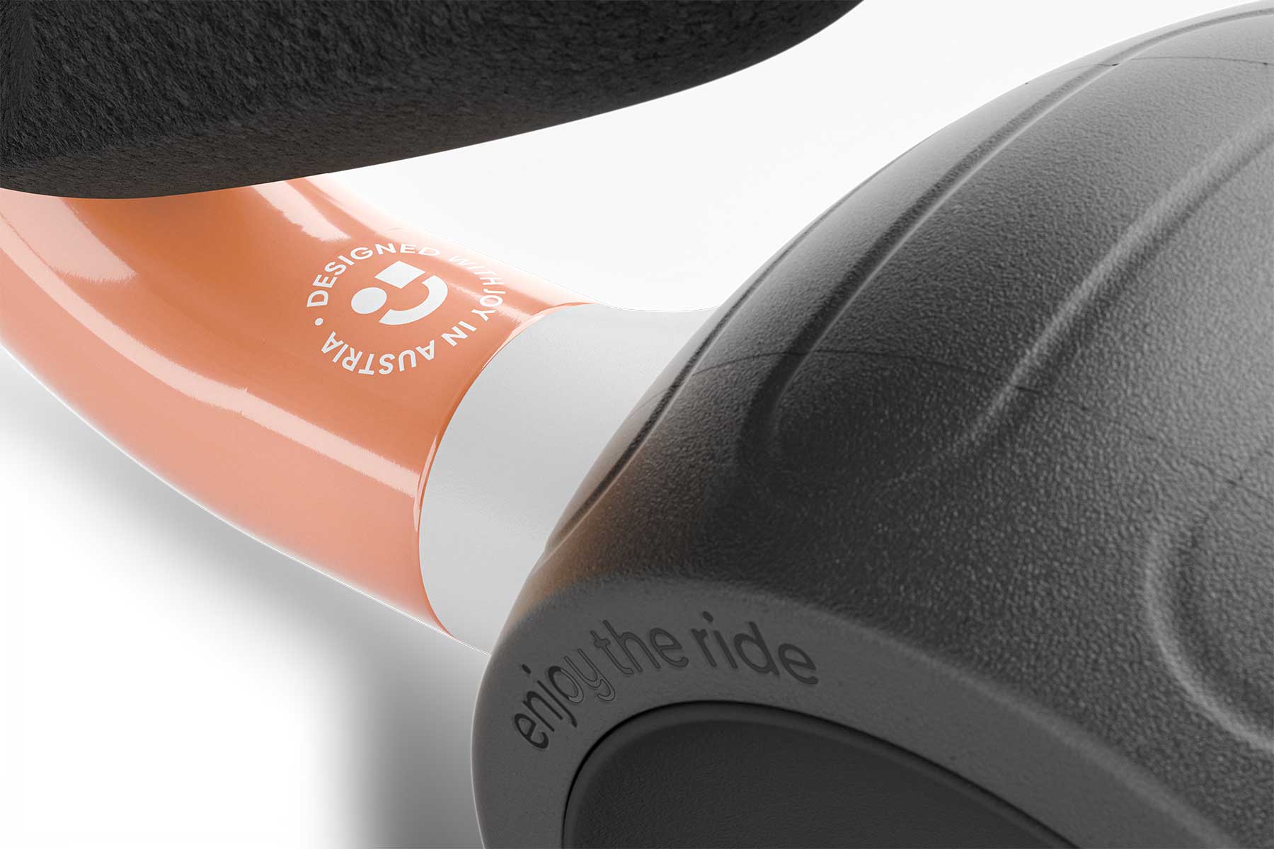 Den lave vægt på kun 2,7 kg gør den til en af de letteste løbecykler i sin klasse.